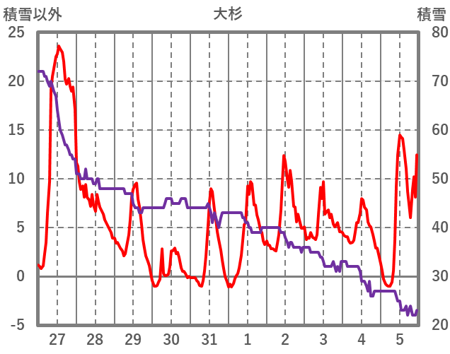 | 日 | 時 | 気温 | 降水 | 風向/風速 | 日照 | 積雪 | 降雪 |