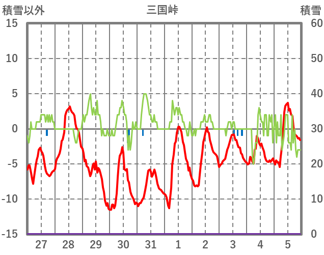 | 日 | 時 | 気温 | 降水 | 風向/風速 | 日照 | 積雪 | 降雪 |