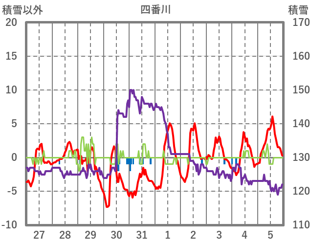 | 日 | 時 | 気温 | 降水 | 風向/風速 | 日照 | 積雪 | 降雪 |
