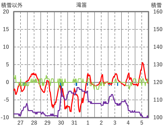 | 日 | 時 | 気温 | 降水 | 風向/風速 | 日照 | 積雪 | 降雪 |