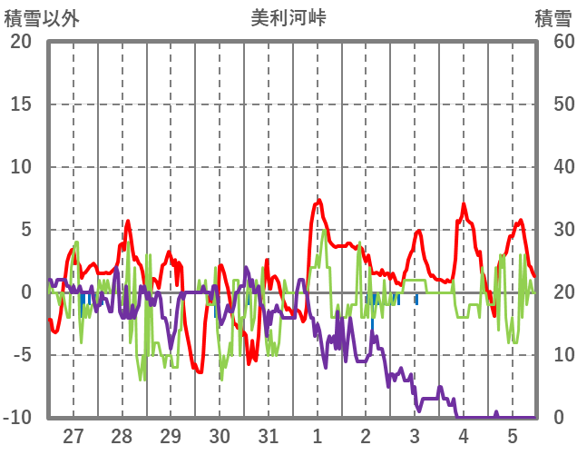 | 日 | 時 | 気温 | 降水 | 風向/風速 | 日照 | 積雪 | 降雪 |