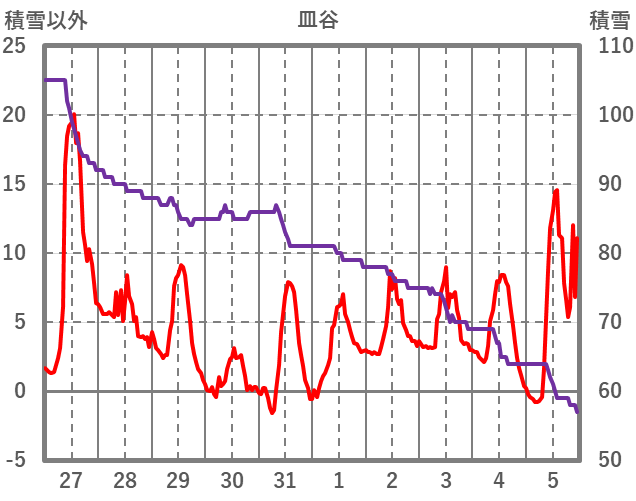 | 日 | 時 | 気温 | 降水 | 風向/風速 | 日照 | 積雪 | 降雪 |