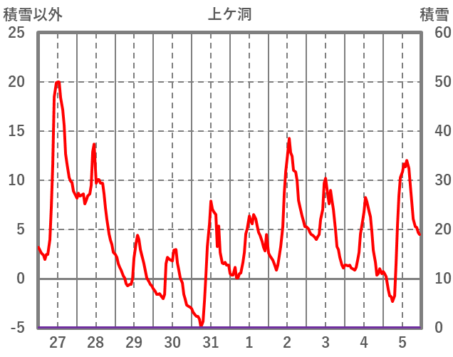 | 日 | 時 | 気温 | 降水 | 風向/風速 | 日照 | 積雪 | 降雪 |
