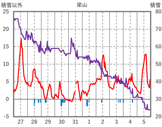 | 日 | 時 | 気温 | 降水 | 風向/風速 | 日照 | 積雪 | 降雪 |