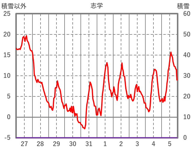 | 日 | 時 | 気温 | 降水 | 風向/風速 | 日照 | 積雪 | 降雪 |