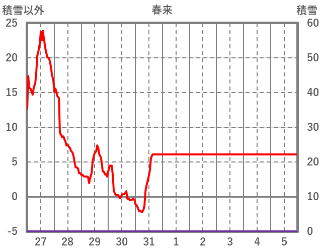 | 日 | 時 | 気温 | 降水 | 風向/風速 | 日照 | 積雪 | 降雪 |