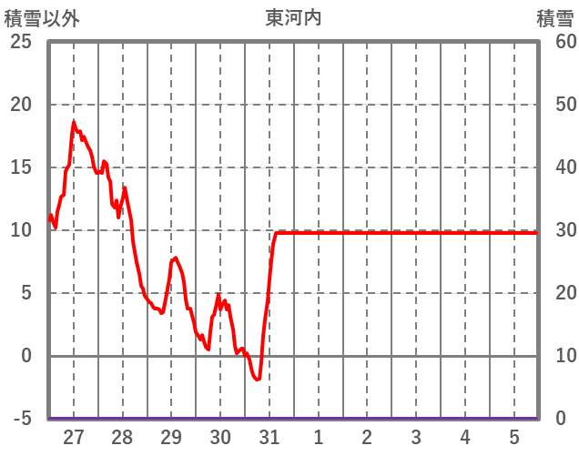 | 日 | 時 | 気温 | 降水 | 風向/風速 | 日照 | 積雪 | 降雪 |