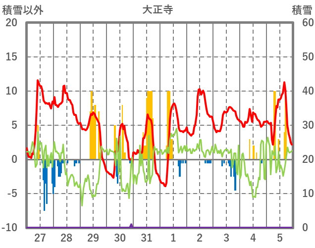 | 日 | 時 | 気温 | 降水 | 風向/風速 | 日照 | 積雪 | 降雪 |
