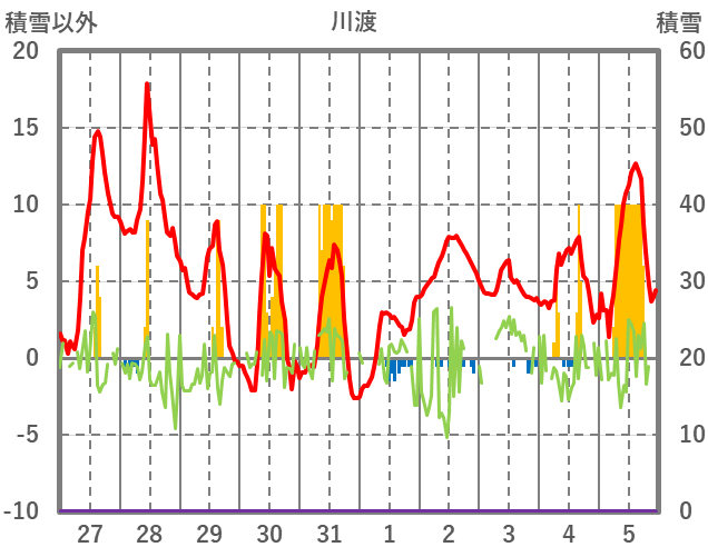 | 日 | 時 | 気温 | 降水 | 風向/風速 | 日照 | 積雪 | 降雪 |