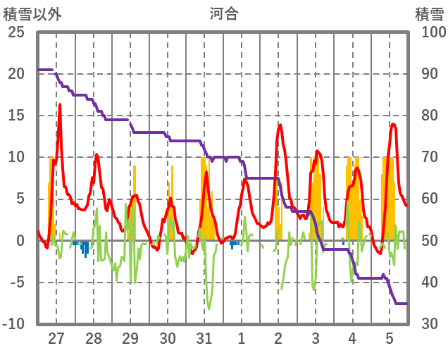 | 日 | 時 | 気温 | 降水 | 風向/風速 | 日照 | 積雪 | 降雪 |