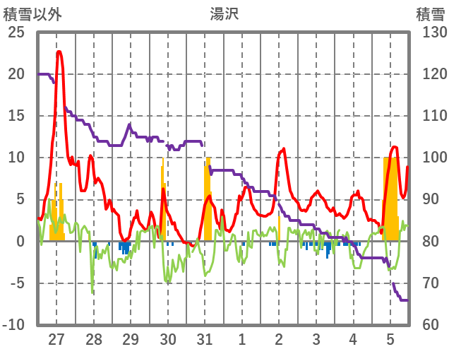 | 日 | 時 | 気温 | 降水 | 風向/風速 | 日照 | 積雪 | 降雪 |