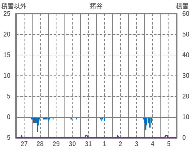 | 日 | 時 | 気温 | 降水 | 風向/風速 | 日照 | 積雪 | 降雪 |
