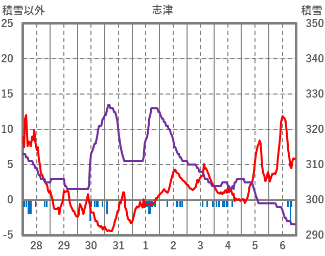 | 日 | 時 | 気温 | 降水 | 風向/風速 | 日照 | 積雪 | 降雪 |