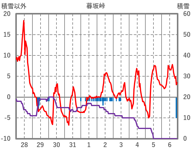 | 日 | 時 | 気温 | 降水 | 風向/風速 | 日照 | 積雪 | 降雪 |