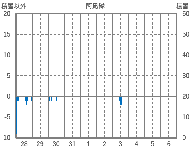 | 日 | 時 | 気温 | 降水 | 風向/風速 | 日照 | 積雪 | 降雪 |