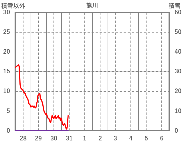 | 日 | 時 | 気温 | 降水 | 風向/風速 | 日照 | 積雪 | 降雪 |