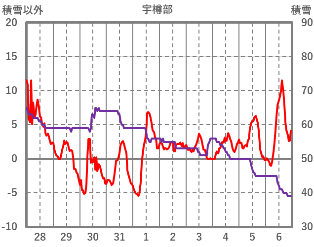 | 日 | 時 | 気温 | 降水 | 風向/風速 | 日照 | 積雪 | 降雪 |