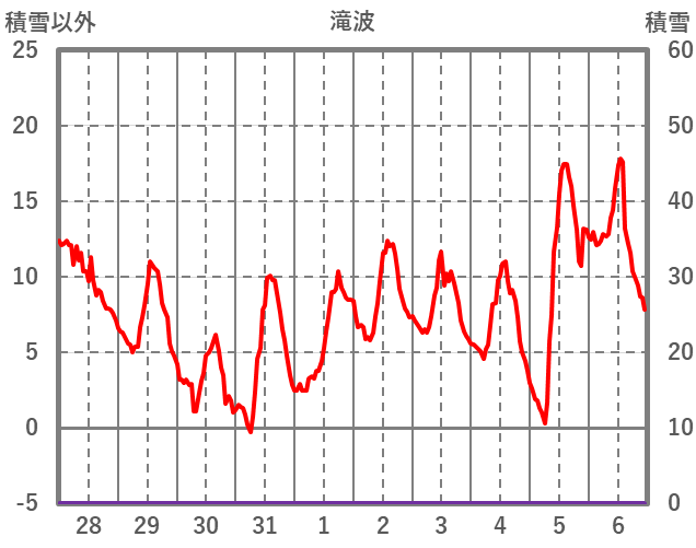 | 日 | 時 | 気温 | 降水 | 風向/風速 | 日照 | 積雪 | 降雪 |