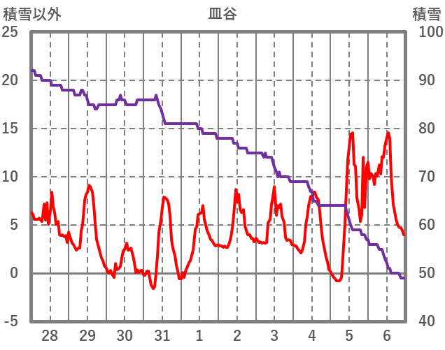 | 日 | 時 | 気温 | 降水 | 風向/風速 | 日照 | 積雪 | 降雪 |