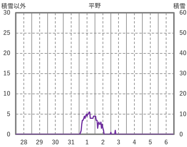 | 日 | 時 | 気温 | 降水 | 風向/風速 | 日照 | 積雪 | 降雪 |