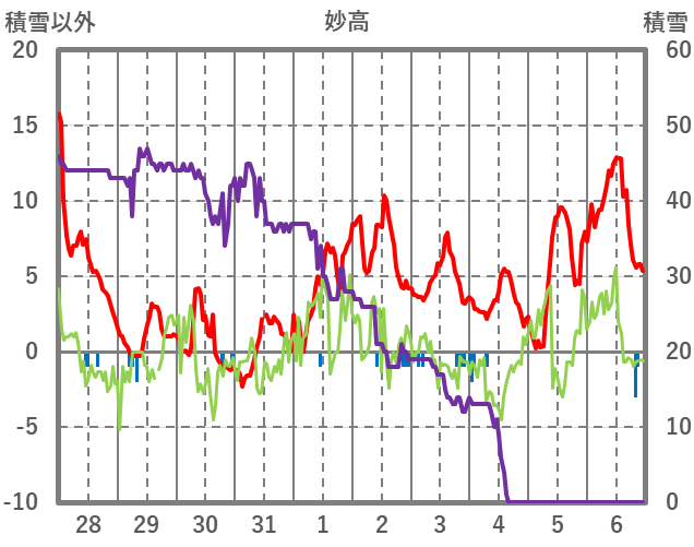 | 日 | 時 | 気温 | 降水 | 風向/風速 | 日照 | 積雪 | 降雪 |