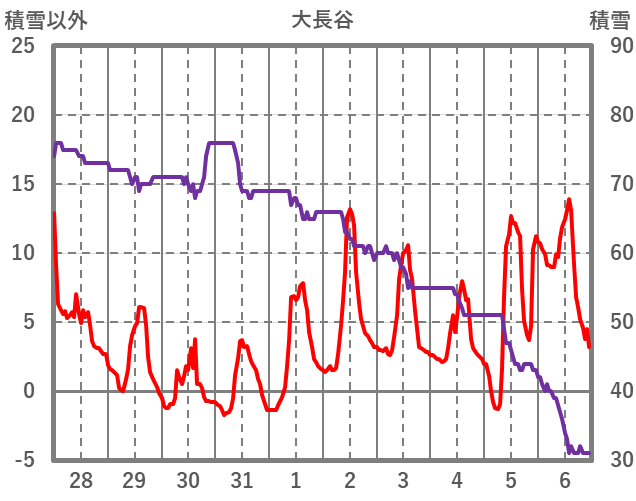 | 日 | 時 | 気温 | 降水 | 風向/風速 | 日照 | 積雪 | 降雪 |