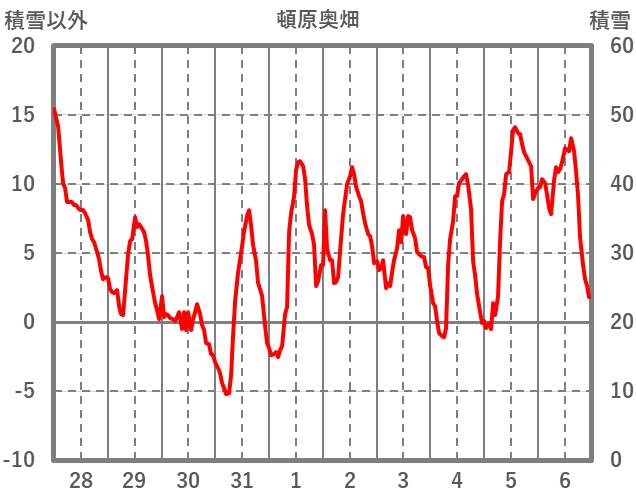 | 日 | 時 | 気温 | 降水 | 風向/風速 | 日照 | 積雪 | 降雪 |