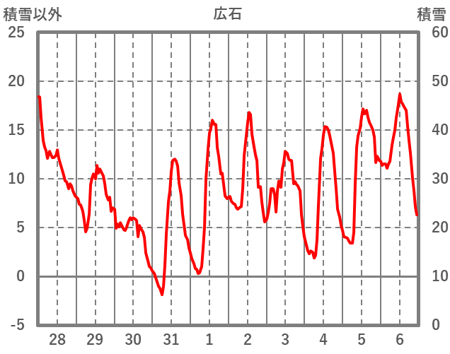 | 日 | 時 | 気温 | 降水 | 風向/風速 | 日照 | 積雪 | 降雪 |