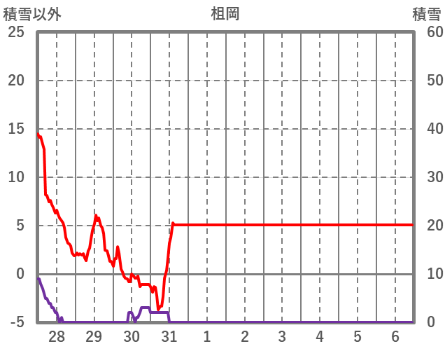 | 日 | 時 | 気温 | 降水 | 風向/風速 | 日照 | 積雪 | 降雪 |