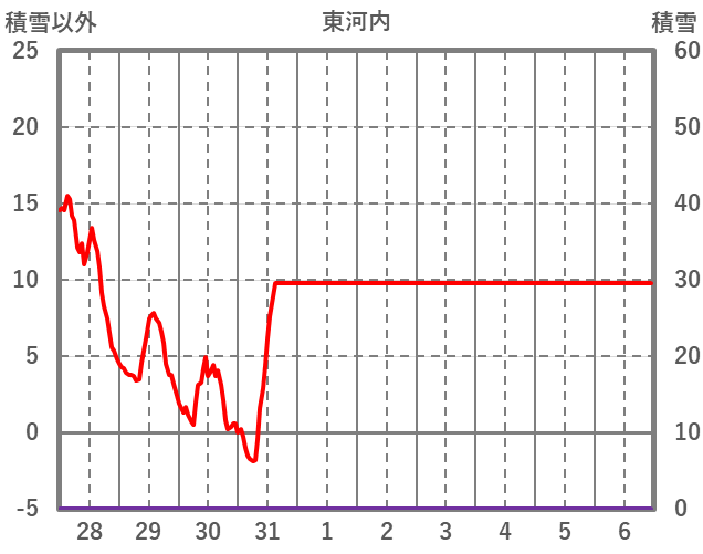 | 日 | 時 | 気温 | 降水 | 風向/風速 | 日照 | 積雪 | 降雪 |