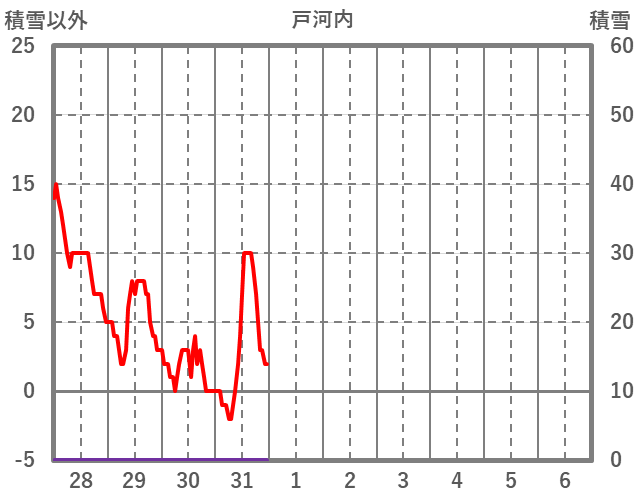 | 日 | 時 | 気温 | 降水 | 風向/風速 | 日照 | 積雪 | 降雪 |