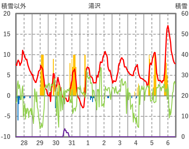 | 日 | 時 | 気温 | 降水 | 風向/風速 | 日照 | 積雪 | 降雪 |