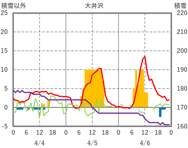 | 日 | 時 | 気温 | 降水 | 風向/風速 | 日照 | 積雪 | 降雪 |