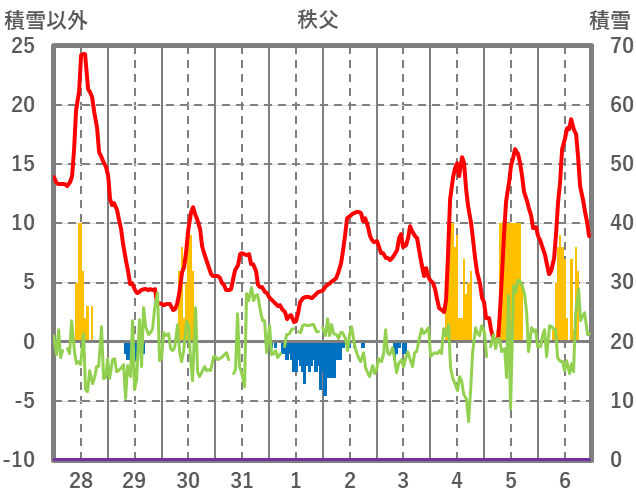 | 日 | 時 | 気温 | 降水 | 風向/風速 | 日照 | 積雪 | 降雪 |