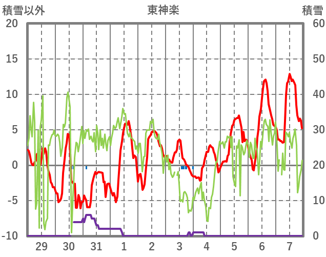 | 日 | 時 | 気温 | 降水 | 風向/風速 | 日照 | 積雪 | 降雪 |