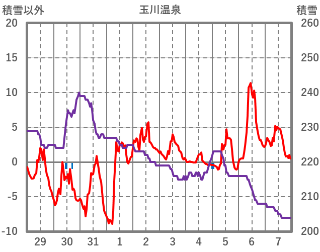 | 日 | 時 | 気温 | 降水 | 風向/風速 | 日照 | 積雪 | 降雪 |