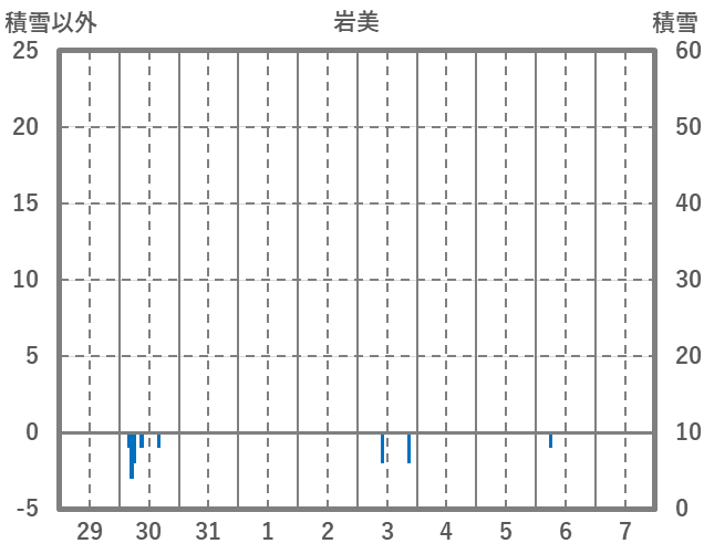 | 日 | 時 | 気温 | 降水 | 風向/風速 | 日照 | 積雪 | 降雪 |