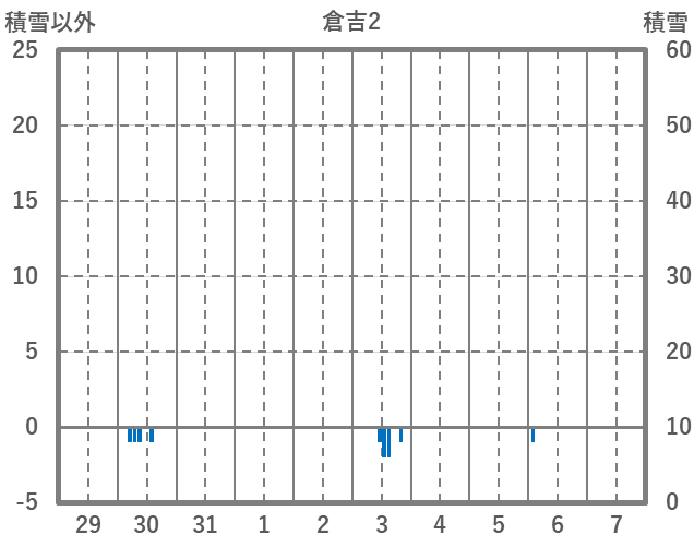 | 日 | 時 | 気温 | 降水 | 風向/風速 | 日照 | 積雪 | 降雪 |