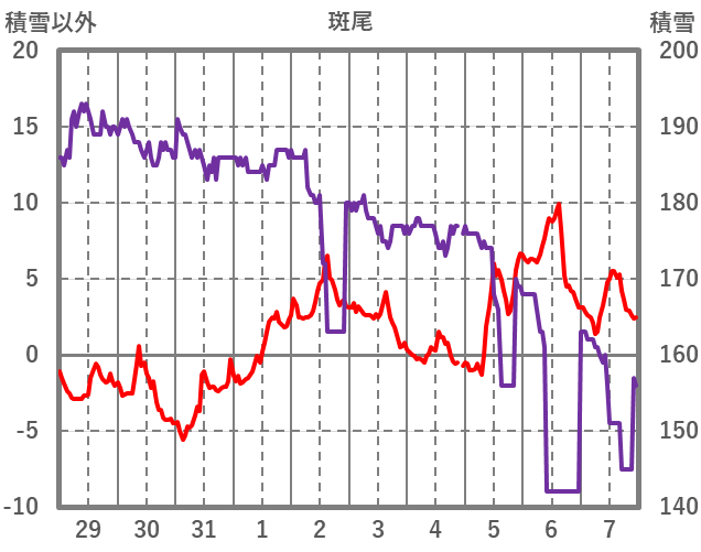 | 日 | 時 | 気温 | 降水 | 風向/風速 | 日照 | 積雪 | 降雪 |