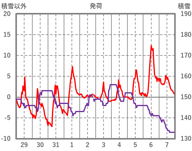 | 日 | 時 | 気温 | 降水 | 風向/風速 | 日照 | 積雪 | 降雪 |