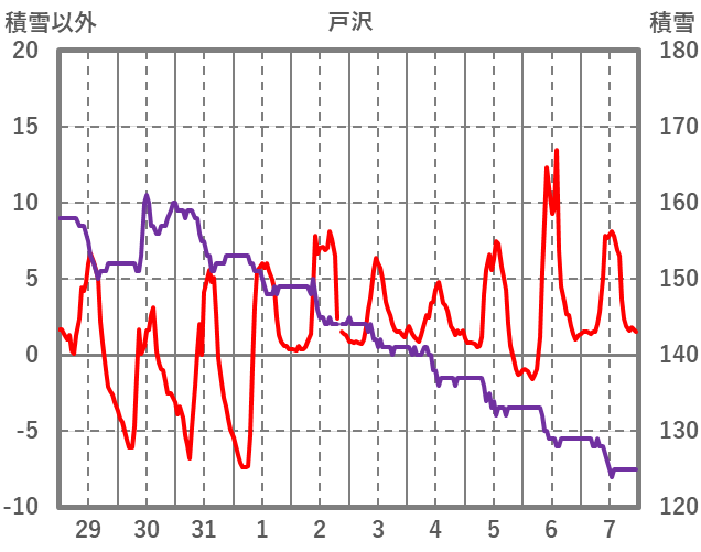 | 日 | 時 | 気温 | 降水 | 風向/風速 | 日照 | 積雪 | 降雪 |