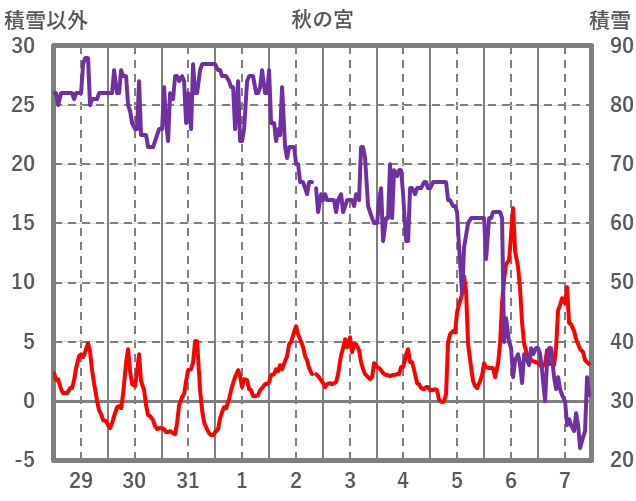 | 日 | 時 | 気温 | 降水 | 風向/風速 | 日照 | 積雪 | 降雪 |
