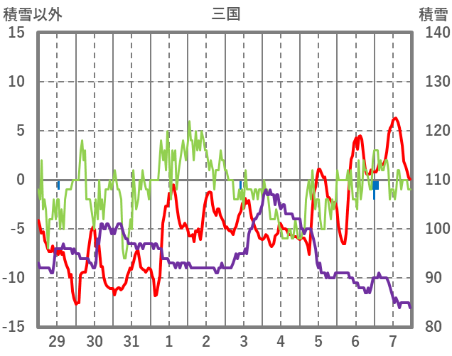 | 日 | 時 | 気温 | 降水 | 風向/風速 | 日照 | 積雪 | 降雪 |