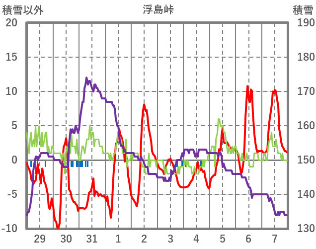 | 日 | 時 | 気温 | 降水 | 風向/風速 | 日照 | 積雪 | 降雪 |