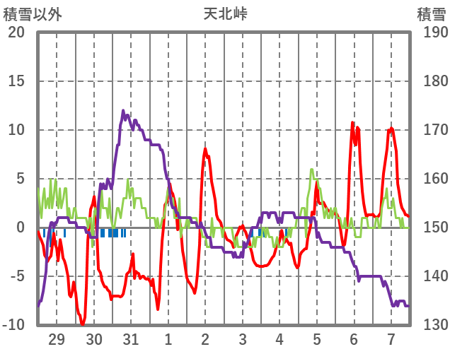| 日 | 時 | 気温 | 降水 | 風向/風速 | 日照 | 積雪 | 降雪 |