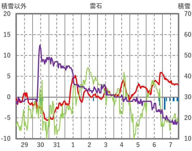 | 日 | 時 | 気温 | 降水 | 風向/風速 | 日照 | 積雪 | 降雪 |