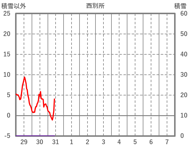 | 日 | 時 | 気温 | 降水 | 風向/風速 | 日照 | 積雪 | 降雪 |