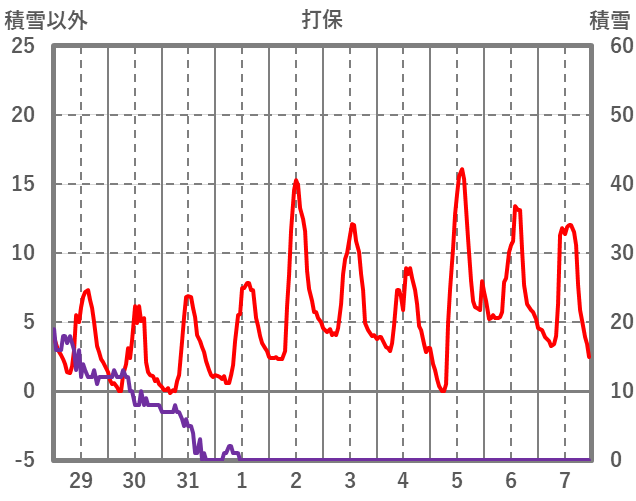 | 日 | 時 | 気温 | 降水 | 風向/風速 | 日照 | 積雪 | 降雪 |