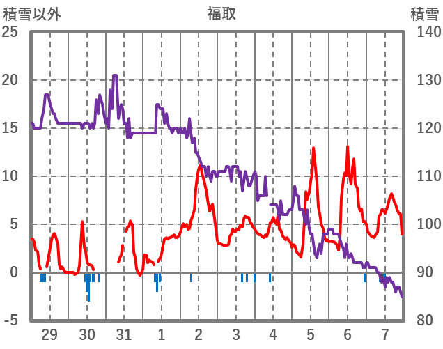 | 日 | 時 | 気温 | 降水 | 風向/風速 | 日照 | 積雪 | 降雪 |