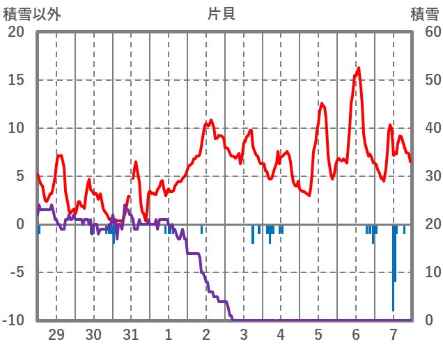 | 日 | 時 | 気温 | 降水 | 風向/風速 | 日照 | 積雪 | 降雪 |